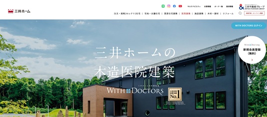 三井ホーム株式会社は医院リフォームの豊富な実績があり、設計や施工だけではなくクリニック運営に関する情報をトータルアドバイスしてくれます。新規開業の建築から改装まで幅広く対応しており、大手建設メーカーのノウハウをもとにクリニックに適した提案が可能です。また、WITH DOCTORSという会員専用プラットフォームを設けており、医院経営に役立つ情報や医師の生活を充実させる情報を発信しています。