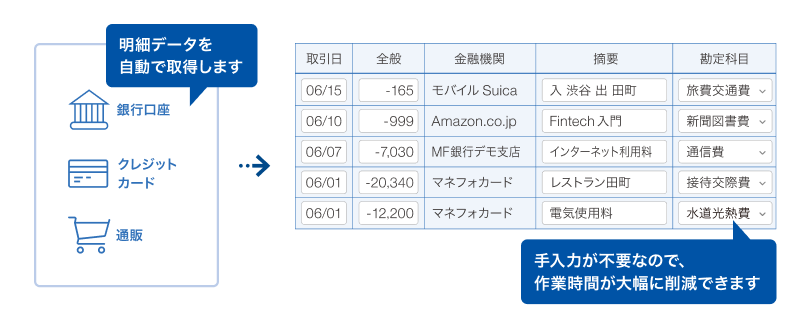 クラウドの会計ソフトを使えば、日々の取引の入力など面倒な作業は自動化し、業務効率を大幅に改善。