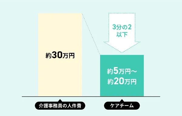 ケアチームは、専門のリモートチームがレセプトを代行します。請求業務の属人化を防止し、事務員の退職にともなうリスクをなくします。元施設長やセンター長をはじめ、介護業界に精通したスタッフを中心にチームを編成して対応します。「この加算が取れるかどうか」といったご相談から、事業所運営に関する幅広いご相談まで。ケアチームは、介護事務員以上に、事業所運営をサポートします。