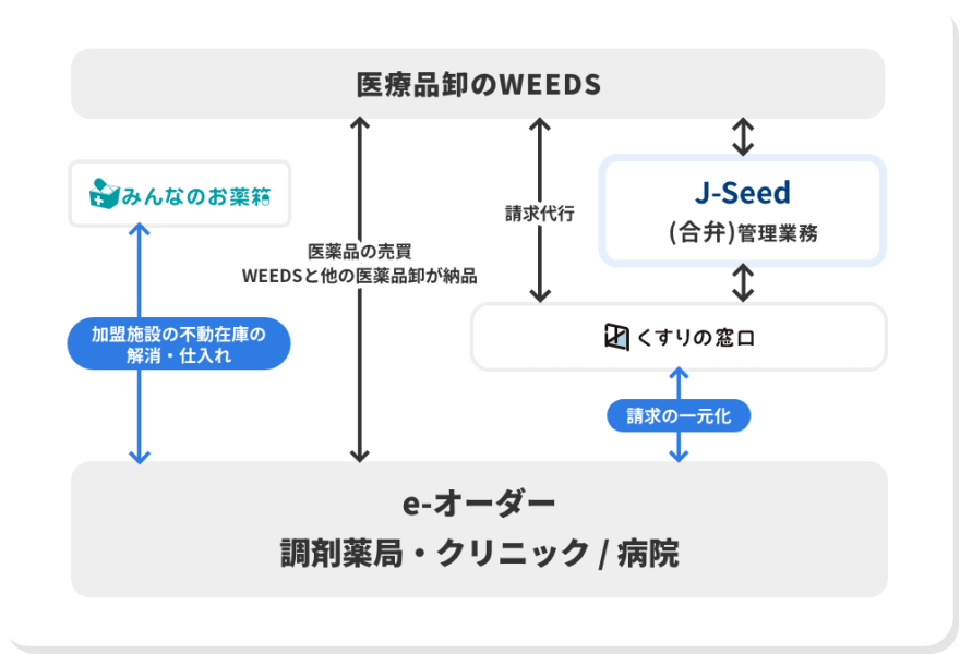 医薬品仕入れサポートサービスは、株式会社くすりの窓口とE-BONDホールディングス子会社である株式会社ウィーズが提供するサービスです。クリニック・薬局での医薬品の仕入れをトータルで支援します。