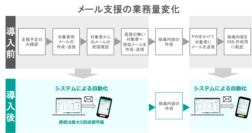 これにより、支援漏れや途中脱落の防止にもつながり、質の高い継続支援を効率的に実施することができます。