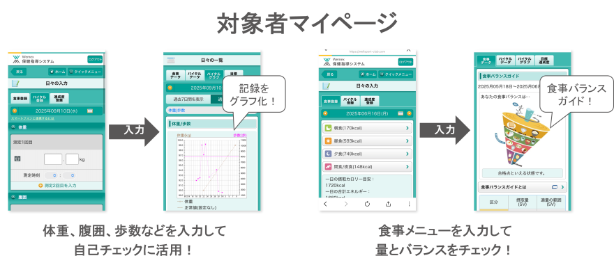 また、対象者は健康管理用のマイページを利用できるため、行動変容を継続的にサポートします。